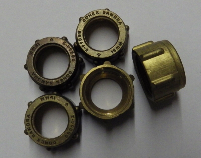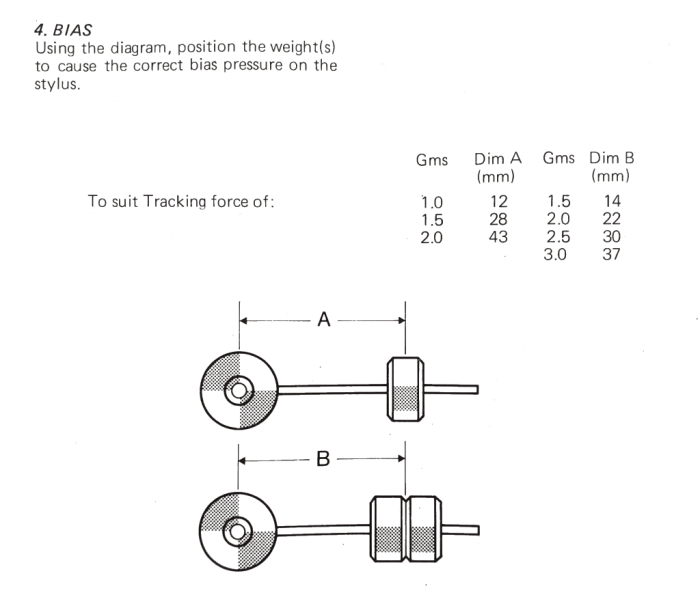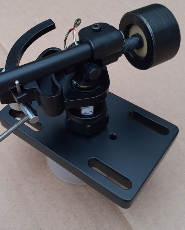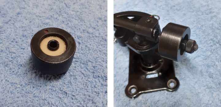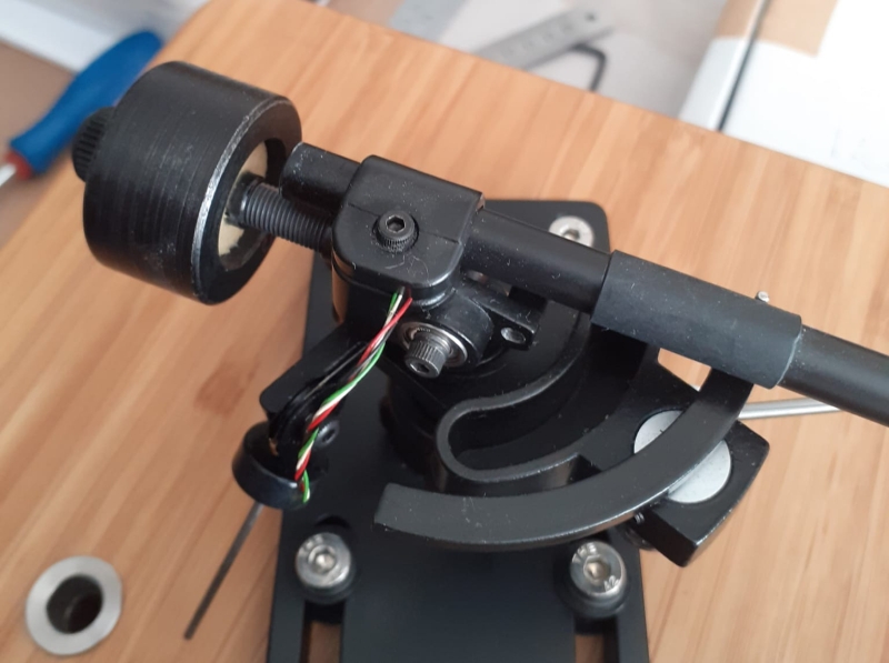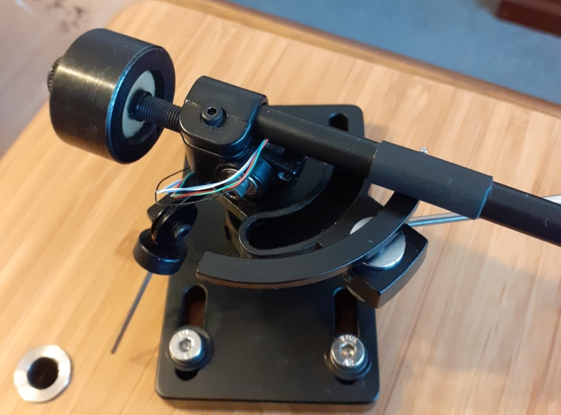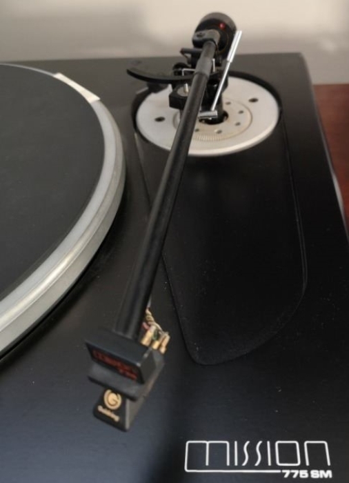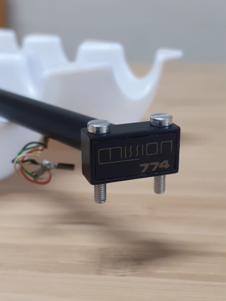 | Mission (Original) 774 Tonearm I've had a long term hankering for a mission 774 Arm, the original as apposed to the later and inferior, 774SC and 774SM models. I've heard quite a few over the years, including a couple on Garrard decks and they always sounded good to me. I nearly bought one a decade ago, but spent to long thinking about it and lost out. More recently, I was offered a boxed item from a fellow forum member, so I made the purchase. For those of you that have been living under a rock for the past 40 years, this is what one looks like. ![]() The arm is capable of working with a wide range of cartridge compliances, due to its fluid damping, but fundamentally its a very low mass Arm at 5.5g, so Medium to High compliance cartridges will probably be best suited. There is no headshell as such, just a threaded alloy block on the end of the arm, overhang is set by adjusting the arm length. The threaded block, requires cartridges be mounted from below. Most of the Cartridges I've been considering for this arm are modern designs and have threaded bodies, which require screws be fitted from above. With great reluctance (Originality), I drilled the Alloy block, to create through holes. I can now mount virtually any cartridge on the arm. ![]() The Aluminium M2.5 fixing screws look tidy and will make mounting/adjustment easy, on a cartridge with a threaded body. Counter Weights The standard weight is made up of three parts, an inner metal tube that's threaded internally, with a thumb grip at one end. An outer metal sleeve which forms the mass of the weight and a flexible Sorbathane filler between the two, that acts as a damper. When attaching or adjusting the weight, it's important to use the thumb grip to rotate it. If you use the body of the weight, you risk tearing the Sorbothane away from its bonding to one of the metal parts, the cause of many sagging weights. ![]() There is also a simpler solid weight. ![]() This has a fairly thin metal end cap, with just a few threads, allowing it to be screwed onto the arm. Extra Weight Back in the day, there were a couple of extra weights available from Mission, to help when mounting heavy cartridges. ![]() These took the form of rings that slipped over the main weight and are held in position by a grub screw. By adjusting the rings position on the main weight, its effect could be varied. They are a rare find these days. Bias Setting To adjust the bias there's a sliding weight/s, these are the instructions from the manual. Fluid Damping The damping on the 774 comprises of a bent wire paddle fixed to the Arm, which dips into a trough of Silicon Oil, like so: ![]() Three different paddles came with the Arm and I've detailed them here: ![]() The Silicon Oil is available from Audio Suppliers, but at a premium price. It can also be obtained, at a lower price, from suppliers of parts for radio controlled model cars. They use it for shock absorbers, transmission gears, etc and its available in many viscosities. A grade of 30,000 cSt is a good starting point, or maybe the thicker 50,000 cST. The paddle used, the viscosity and the oil level in the trough, determines the amount of damping, so the figures for compliance above are just an approximate guide. Arm Base There were several Arm Bases used on the Original 774 Tonearm. ![]() This is the round base, which was fitted to the Mission 775 SM Turntable. Many of the arms fitted to this Turntable had the solid counter weight, without the Sorbothane damping. Probably to reduce costs, as it was a fairly low price Turntable. ![]() These are the two bases that most owners will encounter. The one at the top of the image is the early cast Aluminium base, it has a grub screw that pinches the arm post to hold its position. On these old arms, the hole for the arm post often wears and the grub screw just pushes the post against the far wall of the hole. This doesn't always hold the arm perpendicular to the base (Plinth top). So not my favorite design. The lower image is the later fabricated Aluminium base, it has a slightly deeper hole and a "C" clamp which grips around the arm post. This gives better support and is more likely to be perpendicular. While I prefer it to the early type, it's still not the last word in accuracy, it looks a bit industrial as well. Neither of these bases offers adjustment for the Pivot to Spindle distance. So it looks like I'll have to design and make my own arm base, one that allows the Pivot to Spindle distance, as well as the VTA, to be adjusted. I only have basic tools at my disposal, no Lathe or Milling machines, so I will have to think outside the box when designing it and maybe re purpose parts meant for a different role. I measured the arm post at 15.6mm diameter, what immediately sprang to mind was water pipes! In the UK, water/central heating pipes use 15mm Copper tube, so I searched to see if any of the common fittings would offer a solution and this is what I came up with. ![]() It's a 15mm Tank Outlet. 1/2" BSP external thread and a compression fitting. This has a 15.2mm dia bore to accept a 15mm tube. I can use an adjustable reamer and enlarge the bore, to create a good sliding fit with the arm, of approx 15.8mm dia. The locating nut looks industrial, but I can drill/tap my base and screw the fitting in from the underside.So this nut wont be used to hold the fitting, but it'll make a good spacer, to reduce the amount of thread protruding through the top face. The compression olive can be cut to form a "C" shape, which will allow it to fit over the slightly larger arm post diameter, it doesn't require a water tight seal so the cut is inconsequential. This cut will also stop the olive being compressed onto the arm post and sticking, which would prevent VTA adjustment, using a harder brass olive is preferable to the very soft copper variety. The olive locates into cone shaped recess's in both halves, which have the effect of self centering the Arm. The compression nut also loo