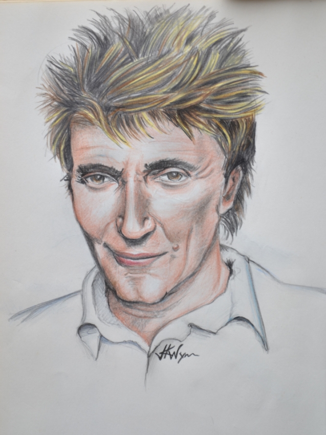 Rod Stewart, first time I've tried colour on a portrait. Inspired by the work of Heather Rooney. - Jan 19