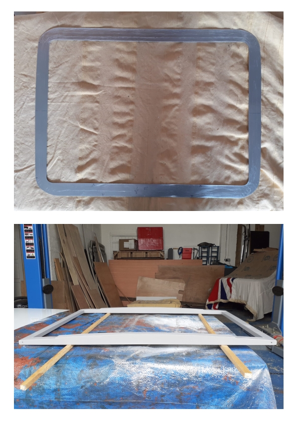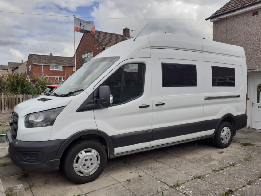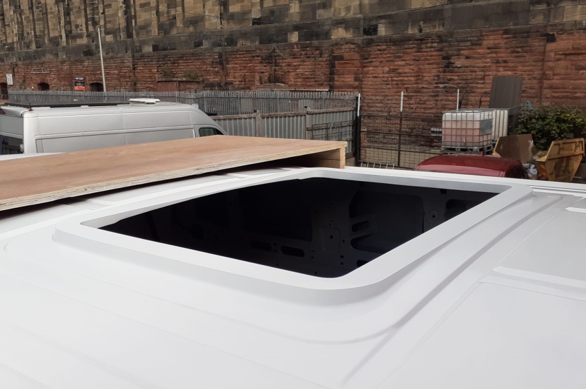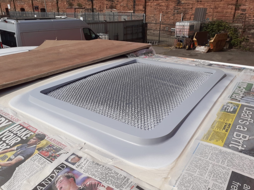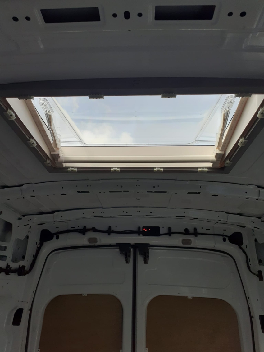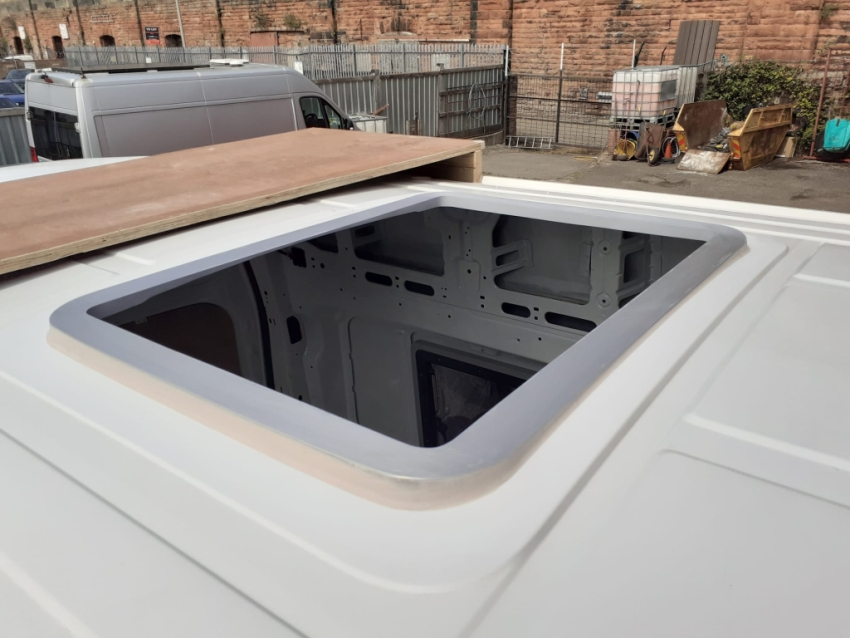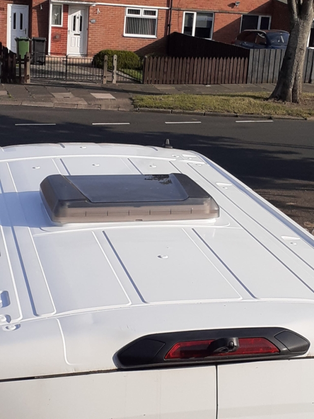 Campervan Conversion Windows and Skylight (Updated Sept 25) First priority, is to do the tasks that require cutting large holes in the body work. So the windows are a decent place to start. I went for 3 identical windows from Jacksons Leisure. They are the top hinged Adventurer THC, requiring a cut out of 960 x 450 mm. These have curved frames to match curved van panels. They are double glazed Acrylic, but have a flat (flush) look to them and come with Black Out Blinds and Fly Screens. I used an air powered slitting disc to cut out the body struts on the interior of the rear panels and sliding door, then cut the rectangular holes with a jig saw/metal cutting blade, from the outside. I masked the area of paintwork under the jig saw to avoid scratching the paint. Bare edges were treated and the frames sealed with Black Sikaflex 522. ![]() The window glasses are classed as lightly tinted, though I would say medium tint and I lined them up with the top edge of the glass on the cab doors. They look very smart, feel positive in use and are well made, I'm very pleased with them. ![]() ![]() The rear pair of windows are in exactly mirrored positions and will be above the pair of seats/beds. You can see the (Grey) curved wooden spacer frames I had to make, to avoid kinking the body panels when screwed up. ![]() The units have choices for the integral Blinds and Fly screens. I went for the White frames and blinds option. One thing I will say, is that the curve in these frames is made for the average curve on an average van, so its only an approximate match to any of them (understandable). Also, on my mk8 Transit 350, the curve varies along the length of the van. For instance, both of my rear windows rear edges, match the curve of my van almost exactly, but by the time you get to the front edges, the curve in the Van panel is twice as much. This leaves a gap at the top/bottom front corners of about 4mm, gradually tapering off over about 170mm on my approx 500mm tall frames. This was easily filled with Black sealant and is barely noticeable against the Black frames. This is infinitely better than trying to match flat frames, where the gap at these corners would be at least twice as big. Flat window frames this large, when screwed up, would almost certainly cause a kink in the body panel, especially if flat spacer frames were used. My curved window frames, with spacers matching the curve of the body, cause zero distortion. Tip: On the first window, I found when removing surplus sealant, especially on the corners that had gaps, I kept wiping the sealant out of the joint with my cloth and messing up the van paintwork. It took ages to get it any where near a decent finish. On the second window, when doing the trial fit, I masked around the shape of the window whilst in situ. I then removed it, masked the frame itself and added sealant to the rear faces. When the window was screwed into position, sealant oozed out on to the masking tape. I ran round the edge of the frame, with the end of a 6" steel rule, scraping away surplus sealant. While it was still wet, I removed the masking tape, leaving an almost perfect finish and the corner gaps were filled nice and square to the frame. You have a job to see where the Black sealant stops and the Black frame starts. So much quicker and cleaner, definitely a better way of doing it. Skylight A decent sized skylight is next on the list. I was erring toward one without permanent ventilation, as there was talk of vented versions whistling when on the move. However, we had one on our motorhome and it didn't make any kind of noise when traveling. The dominating factor, was the need to have sufficient high level ventilation, to rule out condensation and the possible build up, from gas rings etc, of Carbon Monoxide, which is lighter than air and needs an exit path if present. Again I turned to Jacksons Leisure, while not being the absolute cheapest on every item, they are very keenly priced across their whole range of products and are a bit of a one stop shop for self build parts. I went with the MPK Vision Star L Pro 700 x 500 Rooflight. This has no ventilation as supplied, but can be adjusted by the customer to allow various amounts of permanent ventilation, up to 150sqcm of airflow. It has no LED lights, which is my preference and when open, can be locked off every few degrees, rather than only two or three fixed positions. ![]() The roof of the van is curved, more so than the sides, it rises 17mm from flat over the width of the skylight. So I needed to make a platform on the outside, to create a flat sealing face. Also, a curved wooden spacer was needed on the inside, to allow it all to pull up square, without distortion. ![]() The plate for the outer face, I made from 2mm Aluminium sheet. The wood spacer frame has the required curve and notches, to cope with some ribs in the roof. I gave the frame a couple of coats of self priming Grey paint. ![]() I spaced the plate off the bodywork with some glued wooden pegs. If you put a straight edge anywhere on the top face, its nice and flat. I also made a work platform which straddles the roof and locates in the rain gutters. That's all the preparation done, I'm ready to cut the hole. ![]() That's the hole cut, used a jigsaw from the inside. Metal plate fixed and filled with high build body filler. ![]() A coat of Acid Etch Primer applied to key into the Aluminium plate. ![]() White Primer and White Gloss applied, ready to fit the skylight. ![]() And thats the job done, fixed/sealed with White Sikaflex 522. ![]() The clear lid, opens and locks off, every few degrees. ![]() Dropping into a 700 x 500 mm aperture, it lets a fair amount of light into the van and will give plenty of ventilation. ![]() The contours in the roof form a boundary, that just looks right with this size of skylight. |